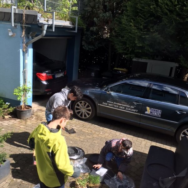 Fleißig, fleißig: Die Meteorologen von morgen schraubten am Donnerstagvormittag bei bestem Wetter unter anderem ein Lysimeter zusammen.