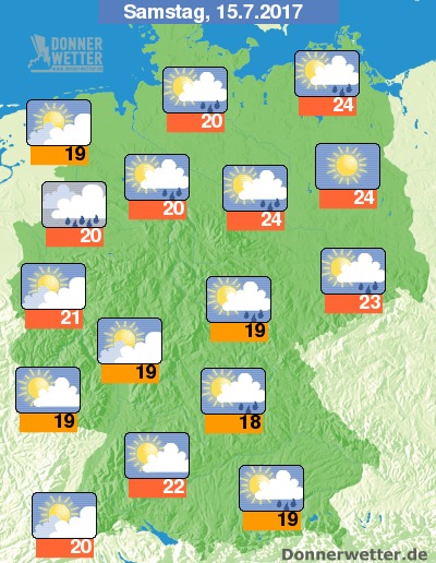 Heute bleibt es vom Südwesten des Landes bis rüber nach NRW verbreitet locker bis aufgelockert bewölkt und dabei weitgehend trocken. Überwiegend sonnig und trocken bleibt es über Berlin-Brandenburg, im übrigen Bundesgebiet ist es hingegen häufig auch stark und sonst wechselnd bewölkt, dabei bilden sich gebietsweise Schauer, Gewitter sind nur vereinzelt möglich. Die Temperatur steigt auf 18 Grad in Oberfranken und bis 24 Grad in Berlin.