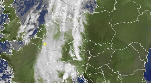 Das aktuelle Satellitenbild zeigt die dichten Wolken über Deutschland.