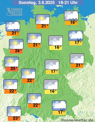 Heute Abend zieht weiterhin meist starke Bewölkung durch, hier und da, vor allem in den westlichen Landesteilen ist es auch teils aufgelockert bewölkt. An der Nordsee, in Ostseenähe und im Südosten Bayerns bilden sich noch einzelne Schauer, sonst bleibt es aber weitgehend trocken. Die Temperatur steigt auf 16 Grad in Oberfranken und bis 25 Grad in der Kölner Bucht.