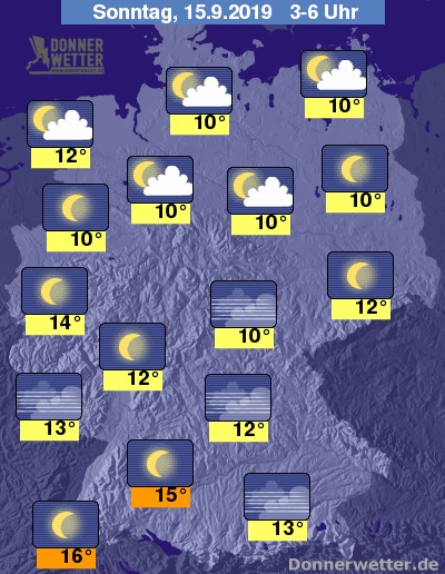 In der folgenden Nacht ist der Himmel sternenklar oder nur locker bewölkt, dazu bleibt es trocken. Die Temperatur sinkt auf 16 Grad in Freiburg und bis 10 Grad im Grabfeld.