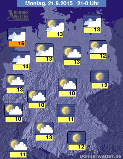 Heute Abend zieht im Nordwesten und später auch im Norden und Westen Deutschlands dichte Bewölkung auf, dazu bleibt es aber weitgehend trocken. Im Südosten zeigt sich ein sternenklarer Abendhimmel. In den übrigen Landesteilen ist es teils locker, teils aufgelockert bewölkt und dabei trocken. Die Abendtemperatur liegt bei 16 Grad an der Nordsee und etwa 10 Grad im Grabfeld.