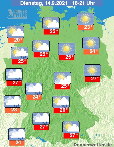 Heute Nachmittag ist es im Osten und Nordosten noch verbreitet sonnig, vor allem im Süden und Westen nimmt die Bewölkung langsam etwas zu, teils bleibt es aber noch locker bewölkt, dabei ist es zunächst noch trocken. Die Temperatur steigt auf 18 Grad an der Nordsee Emden und bis 27 Grad in Schwaben.