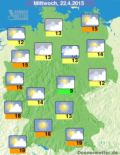Am Mittwoch örtlich 10 Grad kühler als am Vortag
