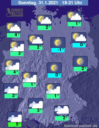 Heute Abend halten sich im Süden dichte Wolken und es fällt gebietsweise Schnee, Schneeregen oder Regen. Im Norden und Osten ist es hingegen meist sternenklar oder locker, sonst teils stark, teils aufgelockert bewölkt, dazu bleibt es trocken. Die Temperatur liegt bei -1 Grad in Magdeburg und bis 5 Grad in Freiburg.