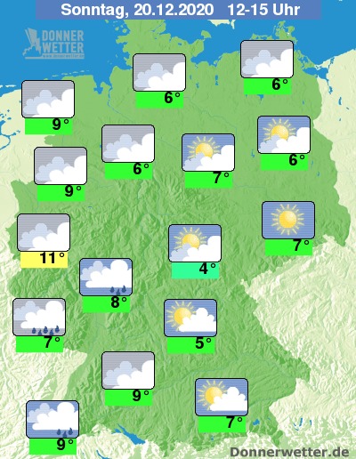 Heute Nachmittag ist es im Osten und Südosten zum Teil heiter, sonst ziehen aber überwiegend dichte Wolken durch, dabei fällt in einem Band von Südwest- bis Nordostdeutschland gebietsweise Regen, sonst bleibt es hingegen weitgehend trocken. Die Temperatur steigt auf 4 Grad am Thüringer Wald und bis 11 Grad im Rheinland.