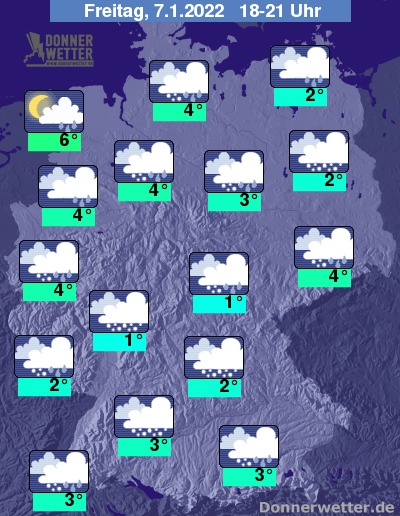 Heute Abend bleibt es weiterhin bedeckt, an der Nordsee kann es auch mal auflockern. Es fällt weiterhin Schnee, Schneeregen oder Regen. Die Temperatur liegt bei 1 Grad im Thüringer Becken und bis 6 Grad an der Nordsee. An der Ostsee ist es teils stürmisch, an der Nordsee herrscht oft sogar Sturm.