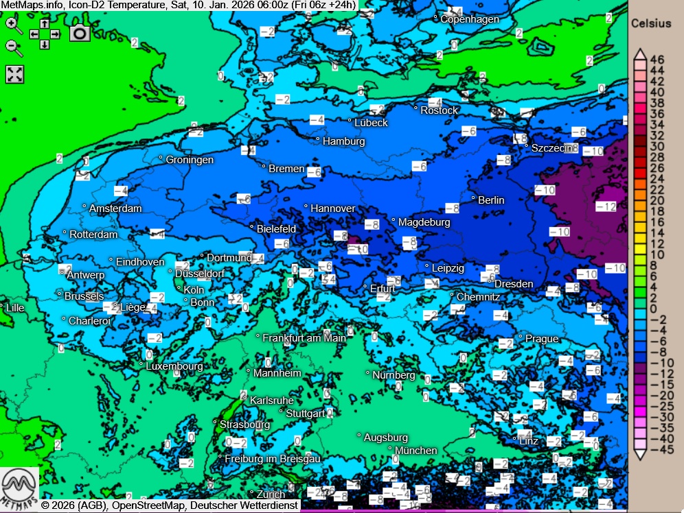 Die Temperaturen erreichen am Freitag Höchstwerte um -6 Grad am Stettiner Haff und bis 8 Grad in Baden.