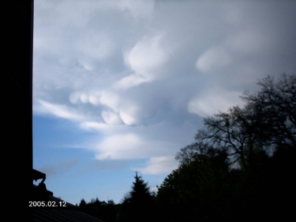 "Hierbei handelt es sich um den Schirm einer Cumulonimbuswolke. Die schönen Formen kommen durch Abwinde auf der Rückseite der Gewitterwolke zustande. Die kalte Luft aus der Gewitterwolke fällt hier wieder zu Boden und diesen Prozess sieht man in der ""Busenform"" der Wolke. Der Fachbegriff heisst ""mammatus"". Ab und zu sieht man diese Wolken bei Gewittern."