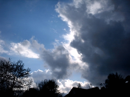 Beschreibung: Zu sehen sind Cumulonimbuswolken, sowie tief hängende Cumuluswolken. Sie befinden sich in einer Höhe von 2-3 km.