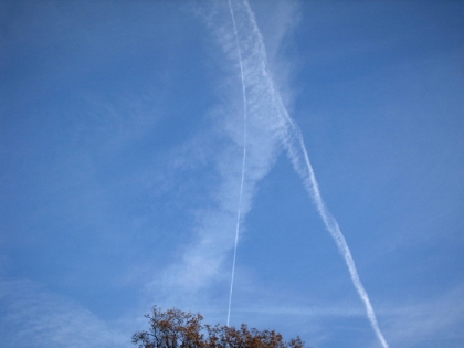 Beschreibung: Zu sehen sind Cirruswolken, die eventuell durch Kondensstreifen entstanden sein können.