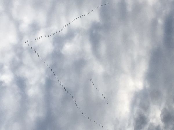 Gänse, Schwäne und Kraniche machen sich auf den Weg.