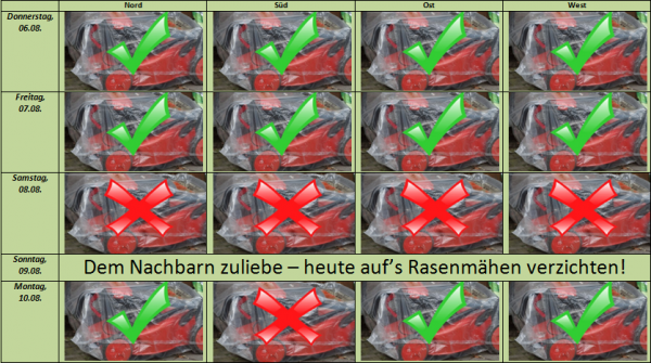 Wer nun seinen in die Höhe geschossenen Rasen stutzen will, hat die Qual der Wahl: Am Donnerstag und Freitag bleibt es zwar niederschlagsfrei, dafür setzt sich der Hobbygärtner brütendheißen Temperaturen von bis zu 37 Grad C aus.