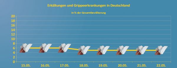 Milde Temperaturen und überwiegend freundliches Maiwetter geht in den nächsten Tagen mit einer nur geringen Grippe- und Erkältungsrate in der Bevölkerung einher.