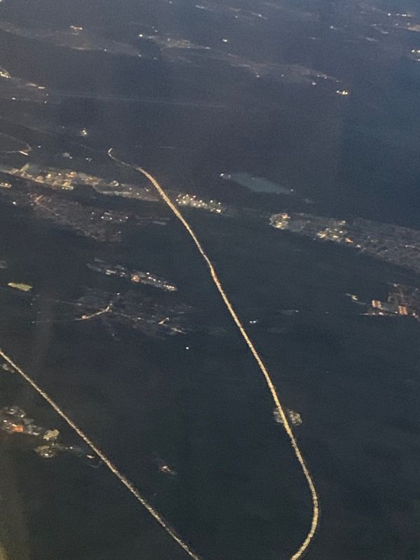 Sie rätseln bei dem oben gezeigten Bild? Es wurde aus dem Flugzeug aufgenommen, Landeanflug auf den Frankfurter Flughafen in der Abenddämmerung. Über zig Autobahnen hinweg schlängeln sich unzählige  gelbe, weiße und rote Lichter, die sich kaum oder nur wenig bewegen.