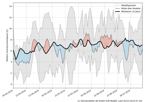 Unsere aktuellen Langfristprognosen für Lufttemperatur, Sonnenscheindauer und Niederschlagshöhe.