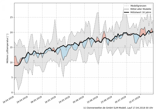 Unsere aktuellen Langfristprognosen für Lufttemperatur, Sonnenscheindauer und Niederschlagshöhe.