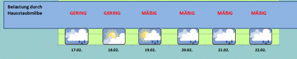 Die nächsten Tagen werden wieder zunehmend feuchter, die Belastung durch Hausstaubmilben bleibt allerdings noch vergleichsweise gering.
