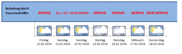 Beim Hausstaub ergeben sich in den nächsten Tagen nur geringe Belastungen für Allergiker.