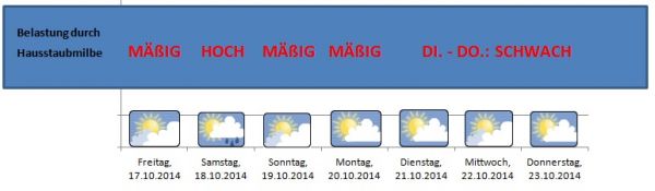 Kühleres Wetter und damit trockenere Luft führt zu einer abnehmenden Milbenbelastung nach dem Wochenende.