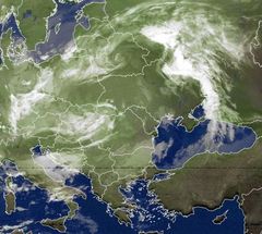 Dunkle Wolken über Osteuropa, Sturmböen an den Küsten