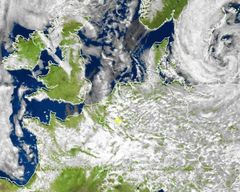 Satellitenbild: Luftmassengrenze über Mitteleuropa