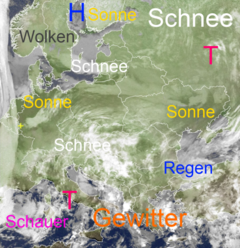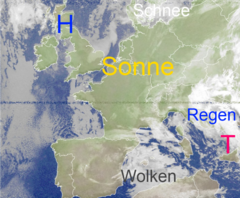 Reichlich Schauer- und Gewitterwolken über Südeuropa