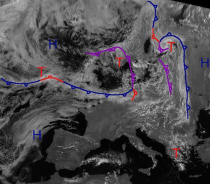 Die Tiefdruckgebiete 'Claus' über Südnorwegen, 'Ali' über Finnland und 'Bernd' über dem Baltikum sorgen für dichte Wolken, Regen und Gewitter über vielen Teilen Nord- und auch Mitteleuropas. Dagegen herrscht über Südwesteuropa Hochdruckeinfluss und vielfach sonniges Wetter. In den nächsten Tagen dehnt sich der Hochdruckeinfluss aus Südwesten etwas nach Mitteleuropa aus, sodass es auch in Deutschland mehr Sonne gibt.