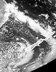 Ein langestrecktes Wolkenband ist über der Nordinsel Neuseelands und bis an die Küste Australiens zu erkennen. Es gehört zu der Kaltfront eines Tiefs über dem Südpolarmeer, die sich nordwärts bewegt. Sie bringt kalte Luft nach Neuseeland. Mit etwas Abstand folgt der Kaltfront von Süden daher aufgelockerte Bewölkung. Sie bringt ein Wechselspiel aus Gewittern, Regen-, Schnee- und Graupelschauern sowie Auflockerungen. Solches Wetter kennen wir in Deutschland auch aus dem Frühjahr, bei uns heißt es 'Aprilwetter'. (Bildquelle: NERC Satellite Receiving Station, Dundee University, Scotland, http://www.sat.dundee.ac.uk/)