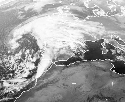 Auf dem Atlantik liegt das Tief 'Yanqiu', dessen Warmfront bereits erste Wolken in den Westen Deutschlands bringt. Mit seiner weiteren Annäherung in der Nacht zum Freitag kann es im Norden wierder stürmisch werden. (Bildquelle: NERC Satellite Receiving Station, Dundee University, Scotland, http://www.sat.dundee.ac.uk/)