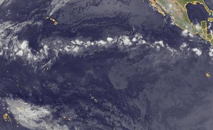 Auf dem Satellitenbild ist über dem zentralen Pazifik die Schauerbewölkung der innertropischen Konvergenzzone zu erkennen.