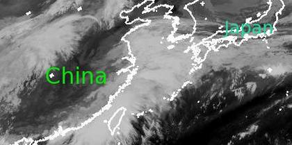 Auf dem Satelittenfoto zeigt sich teils dichte Bewölkung an der Ost- und Südostküste Chinas. Weiter westlich ins Landesinnere lockert dich Bewölkung weiter auf. Zuvor hatten teils monsunartige Niederschläge für zahlreiche Überschwemmungen, speziell im Küstenbereich gesorgt. In den nächsten Tagen zieht das Regenband weiter ostwärts und erreicht bereits heute den Süden Japans. Örtlich muss mit Niederschlägen von mehr als 100mm in 24 Stunden gerechnet werden, so dass es wiederum zu einzelnen Überschwemmungen kommen kann.