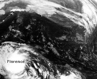 Der Tropische Sturm 'Florence' zieht nun auf dem Atlantik weiter nach Norden und verschont somit die USA. Er soll sich bis zum 11.9. noch verstärken und seine höchste Intensität erreichen. Dabei werden wahrscheinlich Windgeschwindigkeiten bis zu 200km/h erreicht. Im weiteren Verlauf schwächt sich 'Florence' ab und zieht mit der Westwindströmung in Richtung Europa.