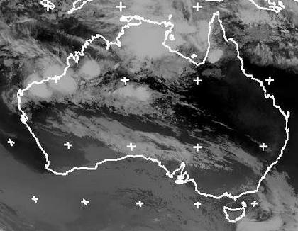 Ein kleines Tief bei Tasmanien sorgt hier und in Victoria teils noch für Regenschauer. Die Wolken erstrecken sich teils noch etwas ins Landesinnere, sie sind aber hier ebenso wie die anderen Wolken über der Südhälfte des Kontinents meist nur dünne, hohe Wolken. Dagegen findet man im Nordwesten und Norden, teils auch Zentrum, hier und da die Bewölkung kräftiger Gewitter. (Bildquelle: NERC Satellite Receiving Station, Dundee University, Scotland, http://www.sat.dundee.ac.uk/)