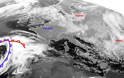 Von England bis in den Norden Italiens sorgt Hoch 'Xandra' für ruhiges, teils aber auch trübes Wetter. Sonst bringen Tiefdruckgebiete von Skandinavien bis ans Schwarze Meer wechselhaftes und kühles Wetter. Auch über der Iberischen Halbinsel bringt ein Tief über den Azoren vor allen in Portugal zum Teil kräftige Schauer und Gewitter.