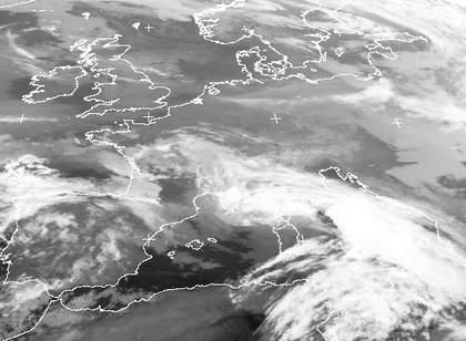 Auf dem Satellitenbild von Europa fallen vor allem die Wolken der Tiefdruckgebiete bei Spanien und Italien ins Auge. Weiter nördlich liegt überwiegend hochnebelartige Bewölkung. Hier dominiert ein Keil des Hochs 'Ingo' bei Island. Im Nordosten liegt das Schneetief 'Elona'. Eher unauffällig ist das Wolkenband eines seiner Ausläufer über Norddeutschland.