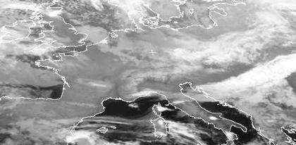 Das Tief 'Gerhard' bleibt immer noch wetterbestimmend im Osten und in der Mitte Europas. Auf dem Satellitenbild vom Sonntagmorgen erstreckt sich seine Kaltfront von Westrussland über Tschechien bis nach Deutschland. Dahinter haben sich Schauerwolken entwickelt, man erkennt sie sehr gut über der Nordsee. Im Süden und Westen Europas ist das Wetter nur leicht wechselhaft, Schauerwolken halten sich über Südspanien sowie über dem Balkan. Im Nordwesten Italiens sind sogar die Alpen zu erkennen.