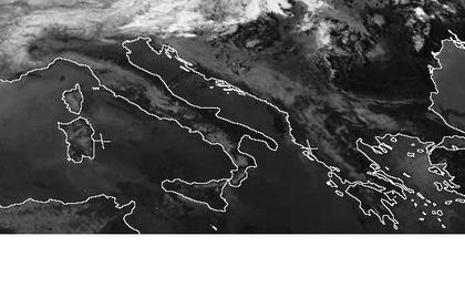 Auf dem Satellitenbild von Montag früh ist der Himmel von Italien bis zum Schwarzen Meer unter Hochdruckeinfluss nahezu wolkenfrei. Dabei sind die Höhenzüge der Alpen, der Apenninen und des Dinarischen Gebirges gut zu erkennen, da sie deutlich kühler sind als ihre Umgebung. Kühlere Temperaturen werden im Infrarotbereich heller dargestellt. (Bildquelle: NERC Satellite Receiving Station, Dundee University, Scotland, http://www.sat.dundee.ac.uk/)