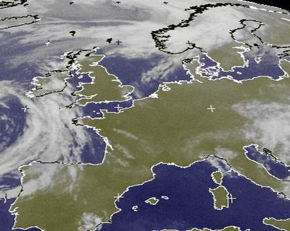 Deutschland ist unter dem Einfluss von Hoch 'Indra' weitgehend wolkenfrei. Zwischen Irland und Nordspanien erkennt man das Wolkenband eines Tiefs auf dem Atlantik. Es nähert sich langsam, schwächt sich aber ab und bringt Mitte der Woche nur noch einzelne Schauer nach Deutschland. Auch über dem Norden Skandinaviens liegen die Regenwolken eines Tiefausläufers.