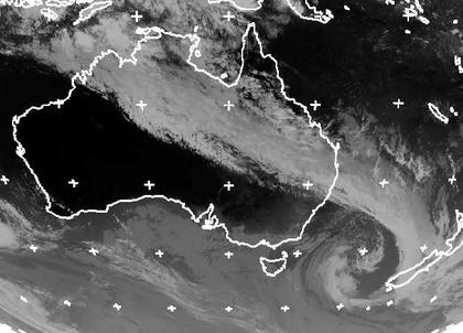 Ein Tiefdruckwirbel über der Tasmansee bringt von Westen Regen nach Neuseeland. Seine Kaltfront ist an einem breiten Wolkenband gut zu erkennen. Sie ist bis weit in den Norden Autraliens gezogen. Hier kommt es zu Schauern und Gewittern. (Bildquelle: NERC Satellite Receiving Station, Dundee University, Scotland, http://www.sat.dundee.ac.uk/)