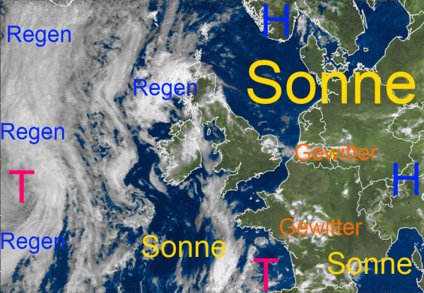 Die Regenwolken, inclusive kühlere Luft über dem Atlantik bleiben uns fern.