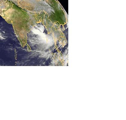 Während Indien nahezu wolkenfrei ist, sind über dem Golf von Benglen dichte Wolken zu erkennen. Hier kommt es zu teils kräftigen Schauern und Gewittern, die sich nur langsam weiter nach Osten verlagern.