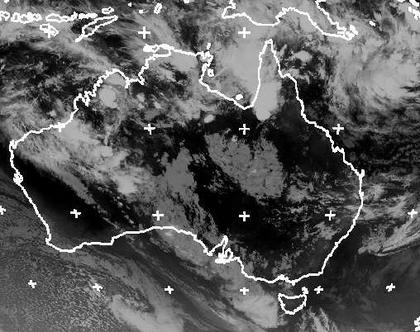 In Australien entstehen Schauer und Gewitter meist im Norden, teils aber auch noch im Landesinneren von Westaustralien. Von Südwesten her nähert sich ein Tiefausläufer mit teils kräftigem Regen der Küste von Südaustralien. (Bildquelle: NERC Satellite Receiving Station, Dundee University, Scotland, http://www.sat.dundee.ac.uk/)