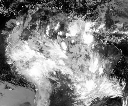 Auf dem Satellitenbild von Dienstag früh sind vor allem über Brasilien, Peru und Paraguay Schauer- und Gewitterzellen gut zu erkennen. Diese werden sich im Laufe des Tages noch etwas verstärken, und gebietsweise für teils kräftigen Regen sorgen. In der Karibik, sowie in Kolumbien und Venezuela ist es dagegen freundlicher. (Bildquelle: NERC Satellite Receiving Station, Dundee University, Scotland, http://www.sat.dundee.ac.uk/)