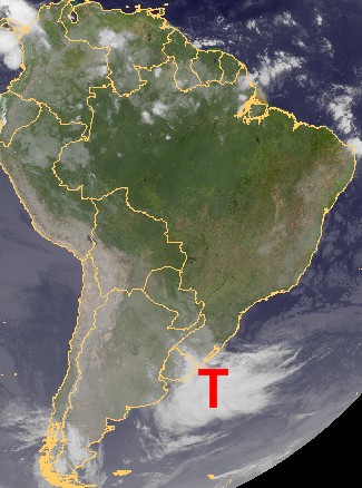 Auf dem Satellitenfoto von Südamerika sind die meisten Teile des Kontinents wolkenlos oder nur gering bewölkt. Bei bzw. über Uruguay liegt dagegen ein starkes Tiefdruckgebiet mit vielfach dichter Bewölkung und gebietsweise heftigen Regenfällen. Auch im äußersten Süden Brasiliens sind teils kräftige Niederschläge zu erwarten.