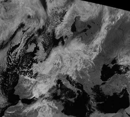 Über Mitteleuropa befindet sich das Tief 'Tilla' das verbreitet für dichte Wolken und Regen sorgt. Sehr gut ist zu erkennen, dass es hinter der Kaltfront von Tief 'Siglinde' mit Zentrum über dem Lappland aufgeklart ist. Der Ladogasee im Süden Kareliens ist deutlich zu erkennen.