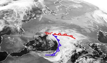 Das Satellitenbild von Freitag früh zeigt dichte Wolken über Italien. Sie gehören zu Tief 'Zeo' und sorgen heute und in den nächsten Tagen im Mittelmeerraum für zum Teil kräftige Niederschläge. In weiten Teilen von Mittel- und Westeuropa sowie in Skandinavien und auf der Iberischen Halbinsel sorgt Hochdruckeinfluss für ruhiges, teils aufgeheitertes, teils trübes Wetter, bis auf wenige Flocken oder Tropfen bleibt es meist trocken.