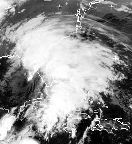 Über Florida liegt der tropische Sturm 'Barry', der teils sehr ergiebige Regenfälle bringt. Außerdem kommt es zu schweren Sturmböen. Er zieht an den kommenden Tagen entlang der Ostküste weiter nach Norden. (Bildquelle: NERC Satellite Receiving Station, Dundee University, Scotland, http://www.sat.dundee.ac.uk/)