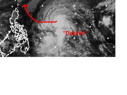Der tropische Sturm 'Twentyseven' wurde in 'Dolphin' umbenannt und befindet sich östlich der Philippinen im Nordpazifik. Zurzeit erreicht er mittlere Windgeschwindigkeiten von 102, in Böen 130 km/h. Berechnungen zufolge soll er sich vorübergehend etwas verstärken und in westlicher Richtung auf die nördlichen Philippinen zuziehen, aber kurz vorher nach Norden abdrehen. Sein Endziel ist allerdings noch unklar. (Bildquelle: NERC Satellite Receiving Station, Dundee University, Scotland, http://www.sat.dundee.ac.uk/)