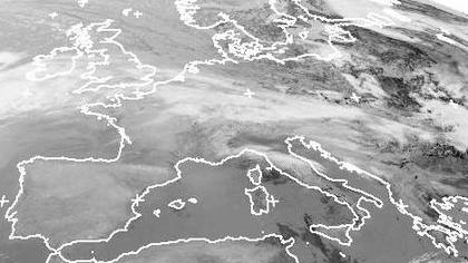 Das Wolkenband, dass sich von England über die Benelux-Staaten bis nach Tschechien erstreckt gehört zu einer Warmfront, die heute vor allem im Süden Deutschlands Regen bringt. Nördlich dieser Warmfront bilden sich in einer labilen Luftmasse örtlich Schauer. Im Mittelmeerraum, sowie auf der Iberischen Halbinsel sorgt Hochdruckeinfluss dafür, dass sich hier nur wenige, meist harmlose Wolken bilden. (Bildquelle: NERC Satellite Receiving Station, Dundee University, Scotland, http://www.sat.dundee.ac.uk/)